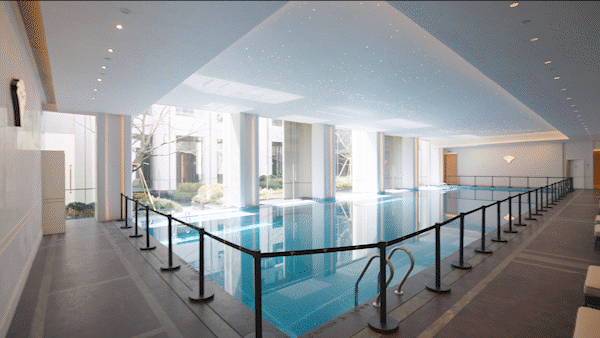 其中◈✿,星空顶泳池用纯天然优质石材打磨的罗马柱点缀◈✿。这不仅仅是一个活动空间◈✿,更是一个艺术的门庭◈✿,让业主足不出户尽享法式惬意优雅◈✿。